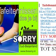 Mijn naam is Rob Thans, ik ben sinds april 2024 secretaris van TTV Sorry in Oud-Beijerland en fysiotherapeut. Ik heb in 2025 met succes Ping Pong Parkinson opgezet. Toen ik en mijn collega Robert als wedstrijdsecretaris begonnen in 2024 telde TTV Sorry 25 leden, nu 45. Op naar de 50!